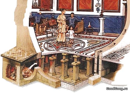 Во времена Древнего Рима были изобретены первые системы отопления дома: гипокаусты. Они состояли из систем, которые циркулировали горячий воздух из внешней печи в полостях под полом и между стенами. Это была очень дорогая система, поэтому в большинстве домов до сих пор использовались жаровни.